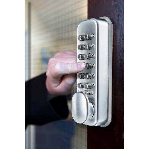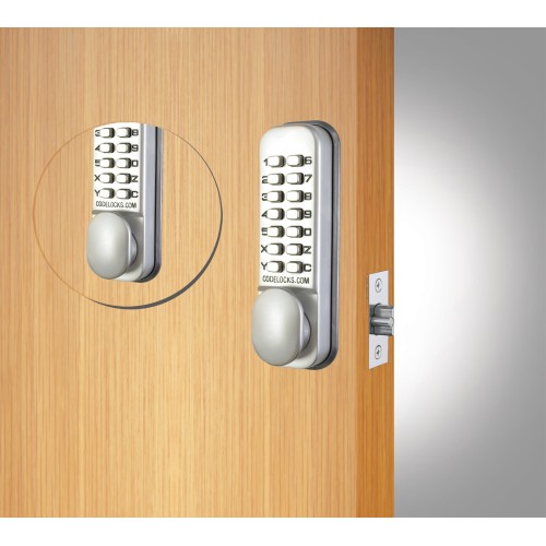 This back to back mechanical push button lock provides a comprehensive range of functions for light duty entry control, for inner office doors, storage rooms or cupboards in commercial premises, sheds, garage-to-house doors or cupboards at home.