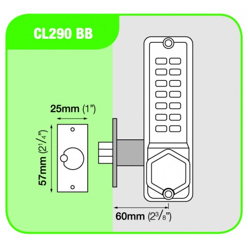 The CL290BB mechanical locks are supplied with a random code commencing with the ‘C’ clear button. To change the code after fitting, the lock must first be removed from the door. The code is non sequential, that is the code can be entered in any order e.g. 1234 can be 4321 or 1342 or whatever is the most convenient sequence. With the 13 buttons a total of 8,191 different codes are available, any of which may be entered in any order.