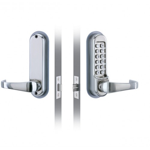 Heavy duty tubular mortice latch. The outside lever handle will retract the latch after a correct code is entered.