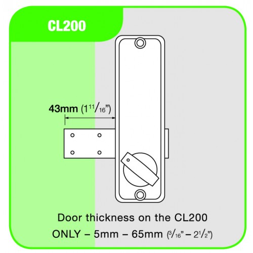 The CL200 is a light duty surface deadbolt. The bolt slides on the inside surface of the door to lock or unlock. The bolt is moved manually be means of the outside knob after the code is entered, and freely by the inside knob at all times.