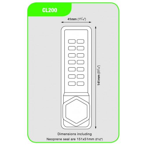 The CL200 mechanical locks are supplied with a random code commencing with the ‘C’ clear button. To change the code after fitting, the lock must first be removed from the door. The code is non sequential, that is the code can be entered in any order e.g. 1234 can be 4321 or 1342 or whatever is the most convenient sequence. With the 13 buttons a total of 8,191 different codes are available, any of which may be entered in any order.